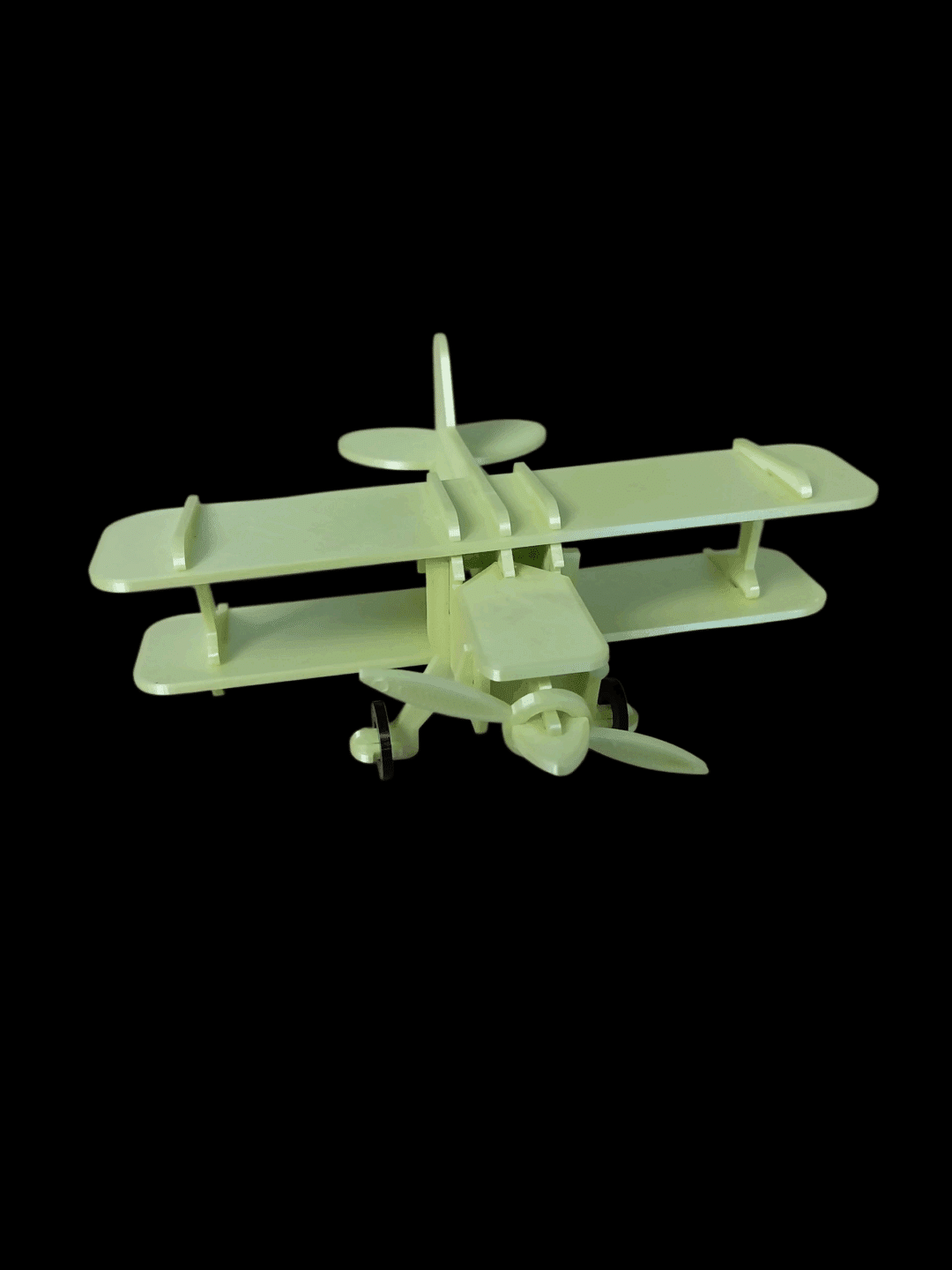 Design réaliste : L’avion biplan présente une double aile superposée, un train d’atterrissage avec roues, ainsi qu’une hélice à l’avant, offrant un rendu fidèle à l’aviation classique.