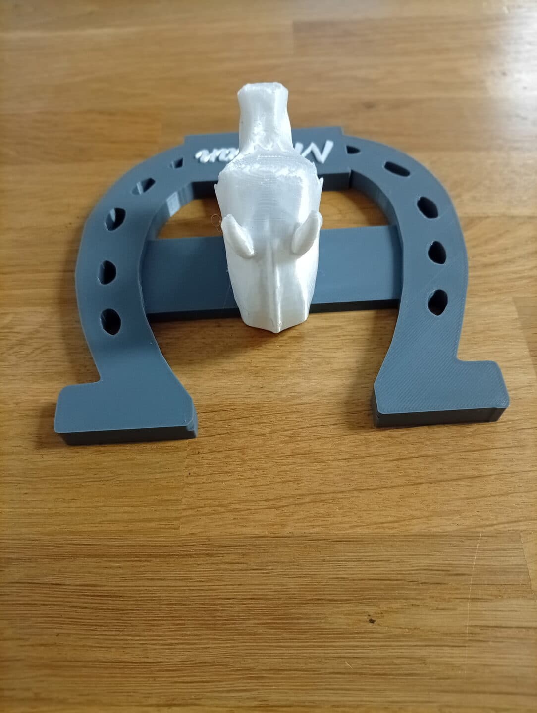 Design Bi-colore : Un jeu de couleurs moderne avec un fer à cheval gris anthracite et une tête de cheval blanche (ou selon vos préférences) pour un rendu haut de gamme.