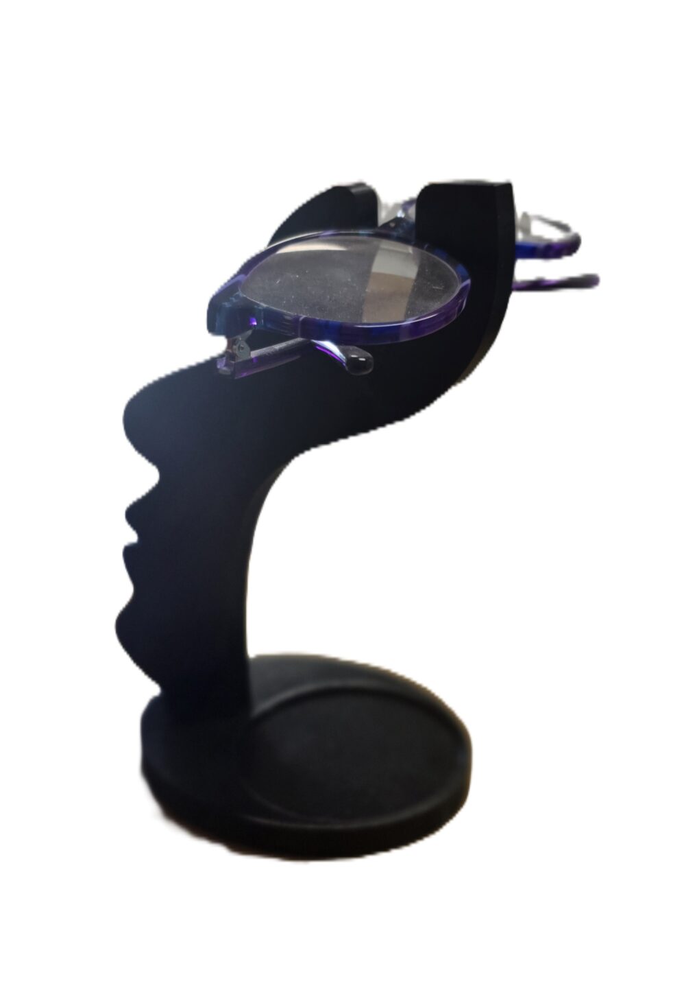 Silhouette Artistique : Le support prend la forme élégante d’un profil de visage stylisé. Cet élément central maintient vos lunettes de vue ou de soleil exactement où vous en avez besoin.