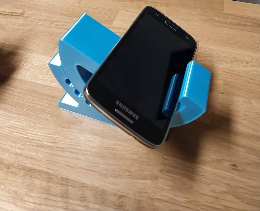 Ce support de téléphone réglable est fabriqué en PLA, un matériau plastique utilisé en impression 3D pour sa robustesse et sa légèreté. Il présente une forme compacte et moderne avec une base stable et antidérapante qui lui assure une bonne tenue sur n’importe quelle surface. Le mécanisme de réglage du support, visible sous la forme d’une arche crantée, permet de choisir l’angle d’inclinaison pour optimiser la visibilité de l’écran, que ce soit en position verticale ou légèrement inclinée.